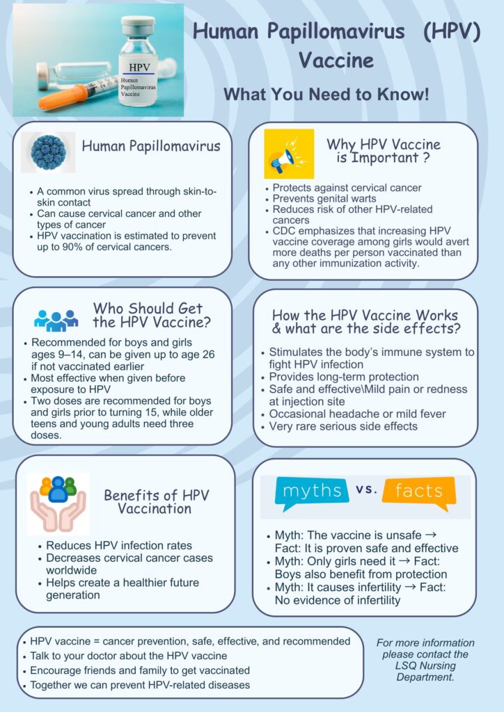 Check out below this infographic our Nursing Department made to raise awareness about HPV and the vaccine that can help prevent it!