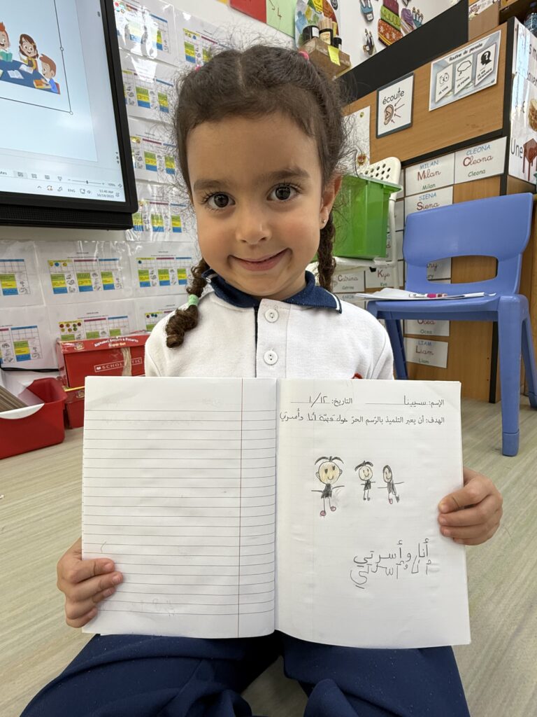 بأسلوبٍ تفاعليﱟ مشوّق، شاركَ أطفالُ الرّوضتيْن الأولى والثّانية في نشاطٍ مميّزٍ بعنوان “عائلتي”، استكْشَفوا من خلالِه مفهومَ العائلةِ وأفرادِها من الأب والأمّ والإخوة والأقارب، وتعرّفوا إلى الفرقِ بين العائلةِ الصّغيرة والعائلة الكبيرة بطريقةٍ تفاعليّةٍ ممتعة. عبّرَ التلامذةُ الصّغار عن حبّهم لعائلاتِهم من خلالِ رسوماتٍ جميلةٍ صوّروا فيها أفرادَ أُسَرِهم والأماكنَ التي يزورونَها معهم. كما تعلّموا تمييزَ الأكبرِ والأصغرِ سنًّا في العائلة، ودَمجوا في الوقتِ نفسهِ بين المعرفةِ واللّغةِ من خلالِ تعلّمِ أحرفٍ جديدةٍ مرتبطة بموضوعِ الدّرس. كان نشاطًا حيويًّا ساهمَ في تنميةِ مهارةِ التّعبير وتعزيزِ الرّوابطِ الإنسانيّةِ لدى الأطفال