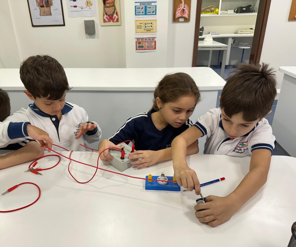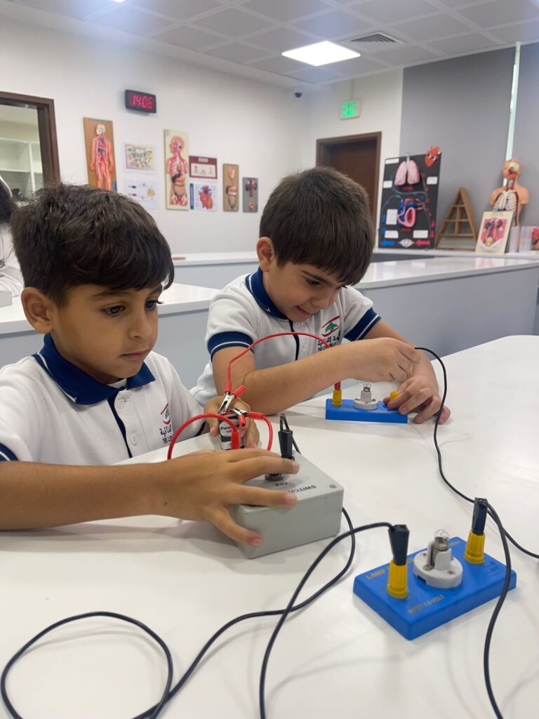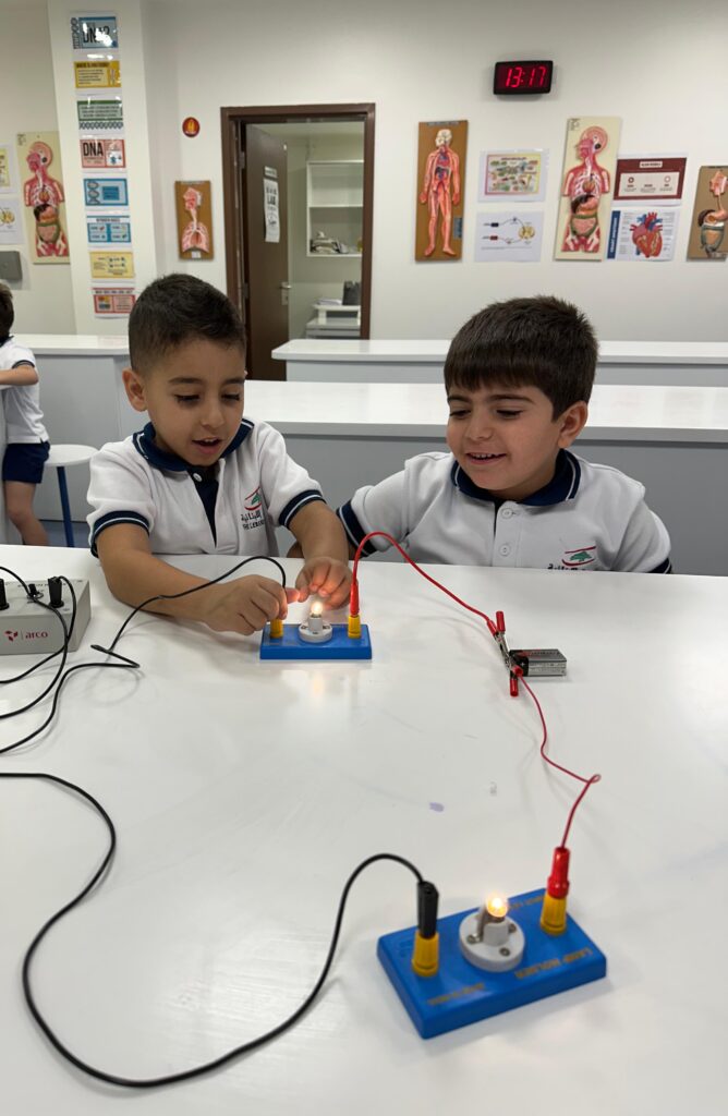 Grade 1 students visited the science lab for the first time, where they explored the fascinating world of electricity. During the session, they discovered the different parts of simple circuits and learned how each component worked. They built their own circuits using various elements and tested different materials to identify which could conduct electricity and which could block its flow. This hands-on experience sparked their curiosity and introduced them to basic scientific investigations.