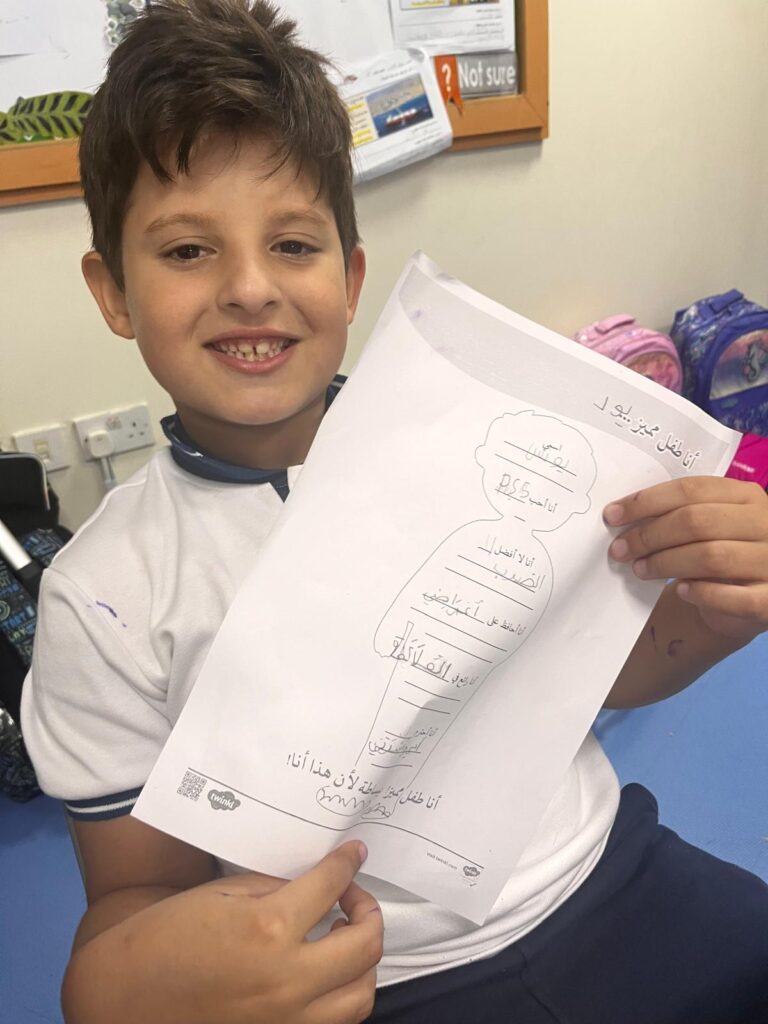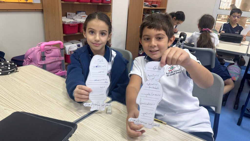 كلُّ واحدٍ منّا مميّزٌ بطريقةٍ خاصّة! بعضُنا يرسمُ بإتقان، وبعضُنا يقرأ بسرعة، وآخرون يُساعدون أصدقاءَهم دائمًا. في صفّنا تَعلّمْنا أن نحبَّ الجميع، وأن نحترمَ مَن يختلفُ عنّا، ومنهم أصدقاؤنا من ذوي الاحتياجاتِ الخاصّة الذين نعتزُّ بوجودهم بيننا. فهم مثلَنا تمامًا، يشاركونَنا التعلّمَ واللّعبَ والنّجاح. هكذا عبّرَ تلامذةُ الصفﱢ الثالثِ الأساسيّ في نشاط “أنا مميّز”، مظهرينَ مواهبَهم ومفتخرينَ بأنفسهم، لأنّهم تعلّموا أنّ التميّزَ الحقيقيّ هو أنْ نقبلَ الآخرين ونفرحَ بقدراتِنا معًا