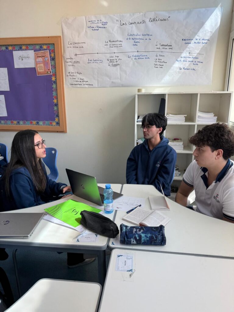 Dans le cadre du cours Langue et Littérature, les élèves de la section IB se sont glissées dans la peau de professeurs ! Avec enthousiasme, elles ont préparé et animé une séance d’introduction à l’œuvre intégrale que leurs camarades du programme libanais vont bientôt découvrir. Cette belle initiative a mis en valeur leurs talents de communicateurs, leur ouverture d’esprit, ainsi que leur créativité et leur sens de l’organisation.