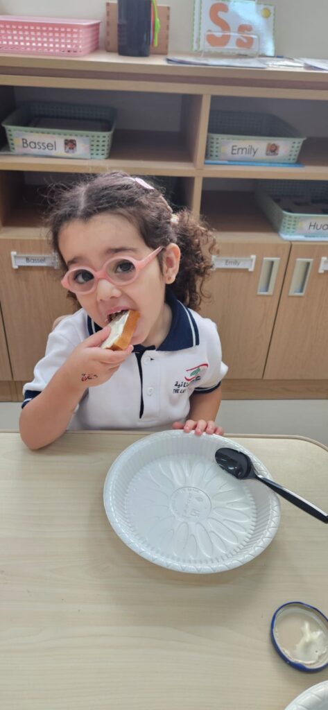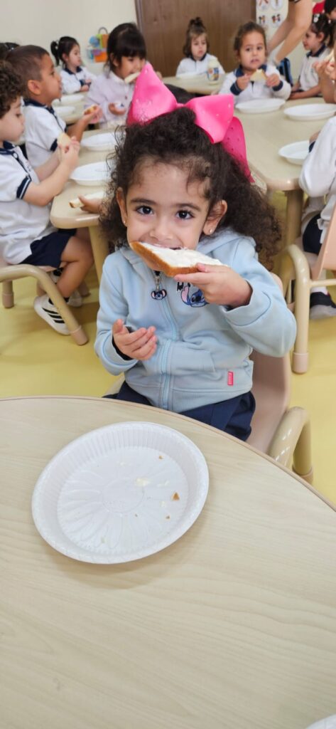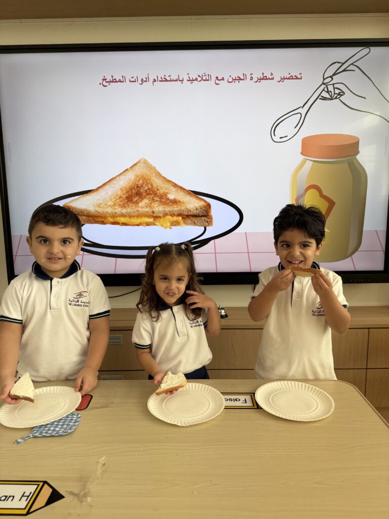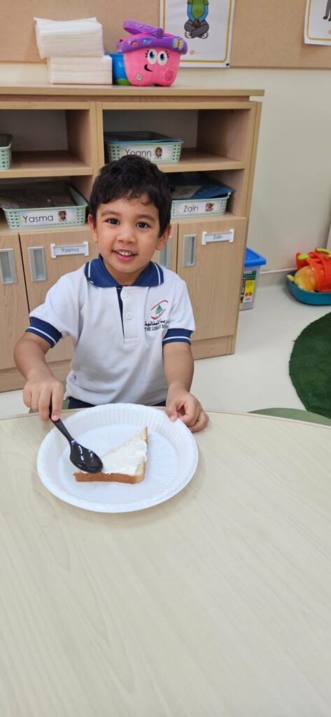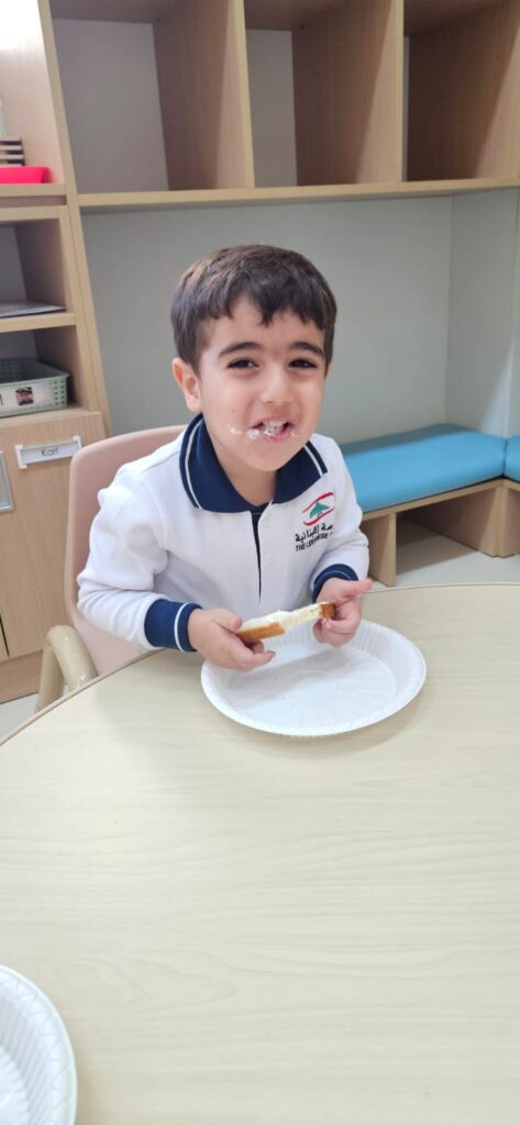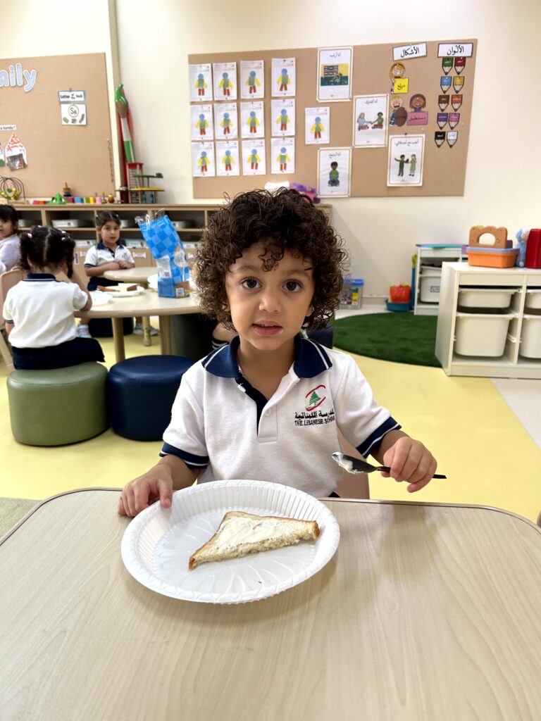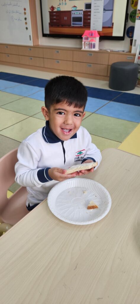 شاركَ أطفالُ الحضانة في نشاطٍ ممتعٍ داخلَ الصفّ بعنوان “شطيرتي الصحيّة” ، أعدّ خلالَهُ كلُّ طفلٍ شطيرتَه الخاصّة بنفسه، فتعرّفَ بذلك على أهميّةِ اختيار المكوّناتِ الصحيّة في غذائهِ اليوميّ. جمعَ النّشاطُ بين المتعةِ والتعلّم، وعزّزَ لدى الأطفال روحَ الاستقلاليّةِ والوعي بأهميّةِ الغذاء المتوازن. جاءَتْ هذه الخطوة ضمنَ مبادرة “نفسُك أمانة” التي تشجّعُ على سلامةِ الجسدِ والابتعاد عن الأطعمة الضارّة وتناولِ الطّعام الصحيّ