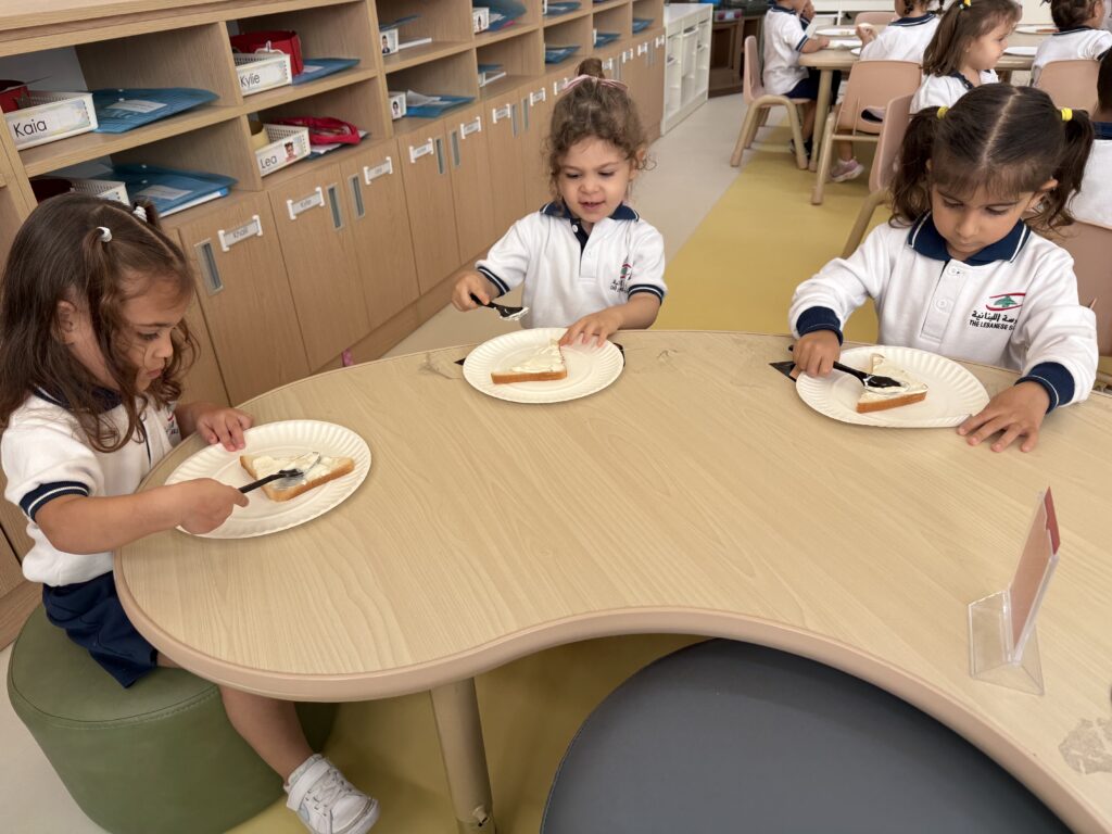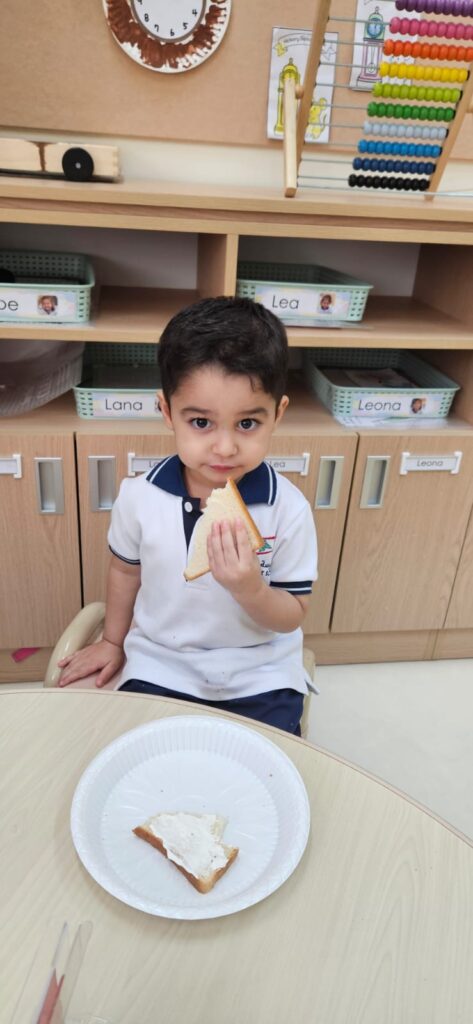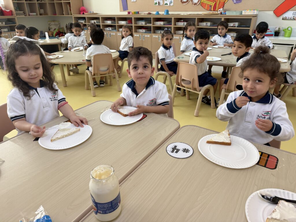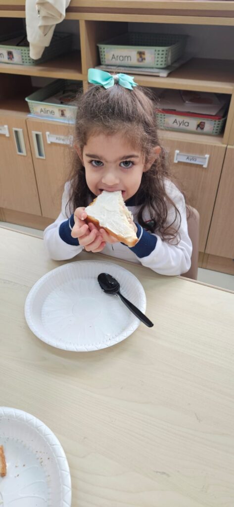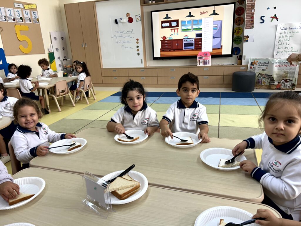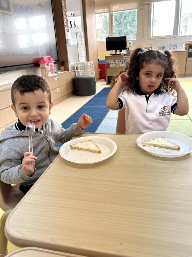 شاركَ أطفالُ الحضانة في نشاطٍ ممتعٍ داخلَ الصفّ بعنوان “شطيرتي الصحيّة” ، أعدّ خلالَهُ كلُّ طفلٍ شطيرتَه الخاصّة بنفسه، فتعرّفَ بذلك على أهميّةِ اختيار المكوّناتِ الصحيّة في غذائهِ اليوميّ. جمعَ النّشاطُ بين المتعةِ والتعلّم، وعزّزَ لدى الأطفال روحَ الاستقلاليّةِ والوعي بأهميّةِ الغذاء المتوازن. جاءَتْ هذه الخطوة ضمنَ مبادرة “نفسُك أمانة” التي تشجّعُ على سلامةِ الجسدِ والابتعاد عن الأطعمة الضارّة وتناولِ الطّعام الصحيّ