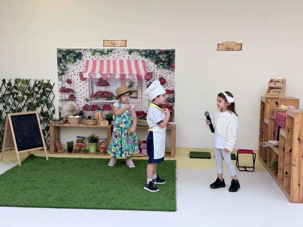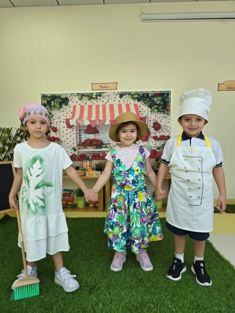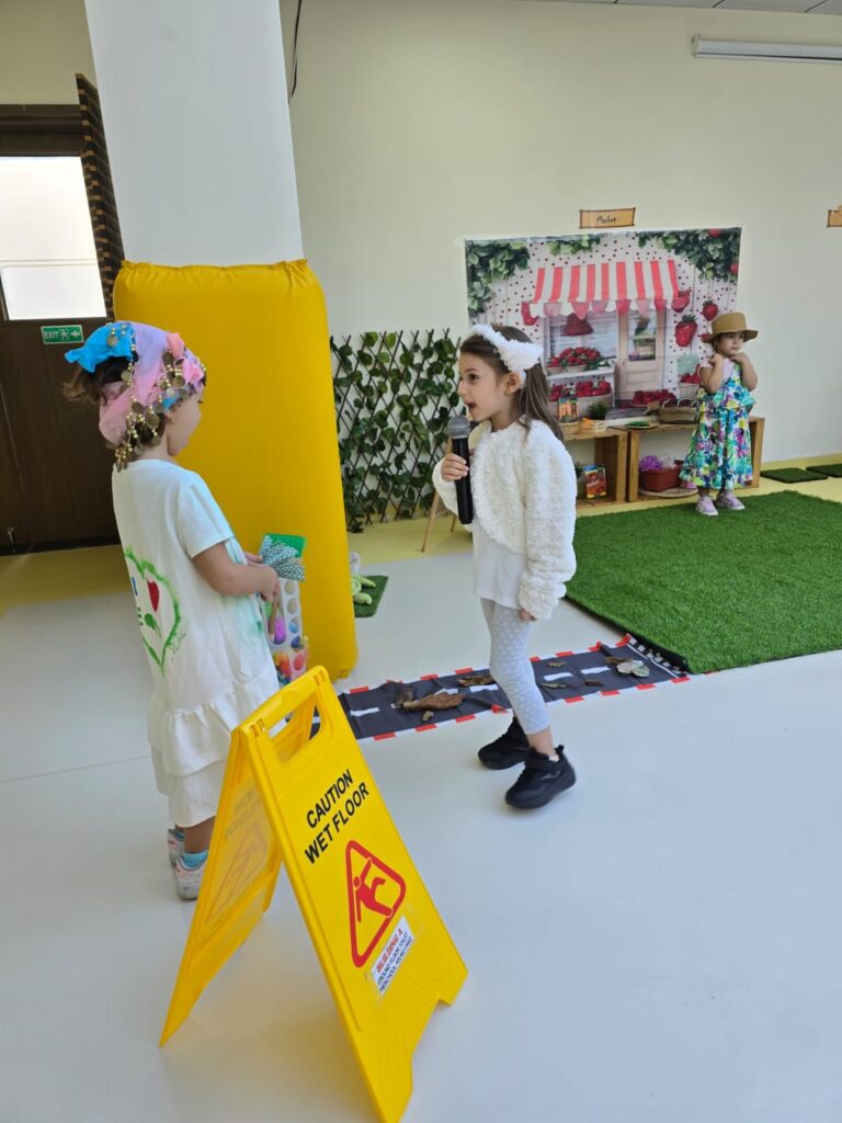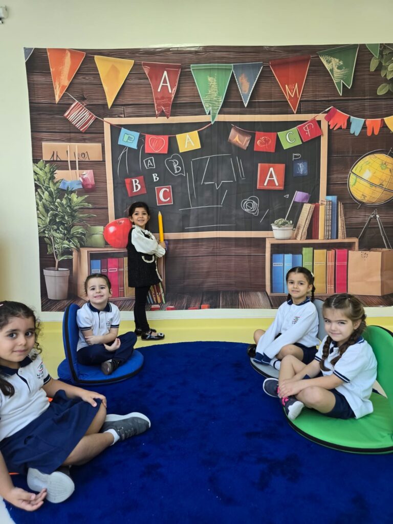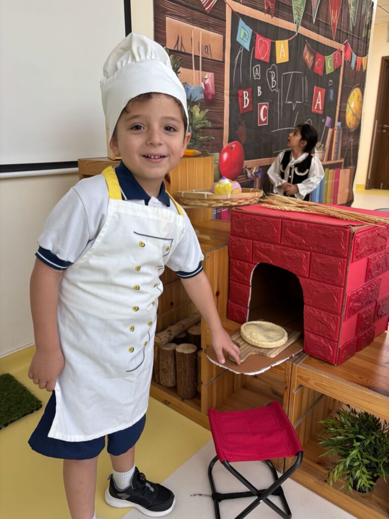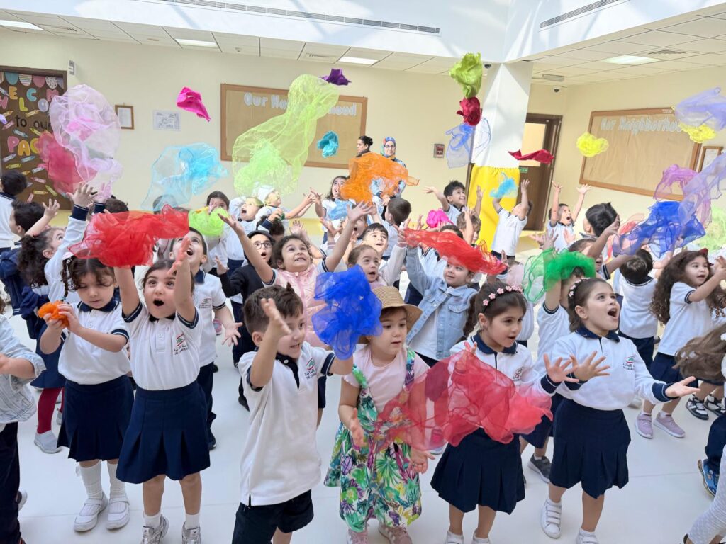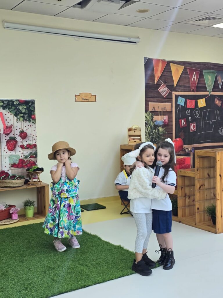 KG1 students presented a heartwarming assembly that showcased their learning in a creative and engaging way. Guided by their teachers, the children performed a lively retelling of “Mary Had a Little Lamb” However, there’s a twist! In this version, the adventurous lamb wanders into town and encounters various community helpers. Through expressive role-play, the students brought these important roles to life, demonstrating an understanding of how each helper contributes to our community. The performance concluded with a vibrant scarf dance, filling the stage with color, movement, and joy.