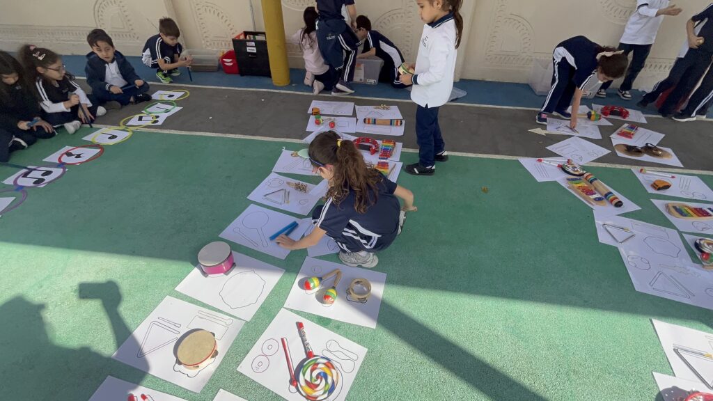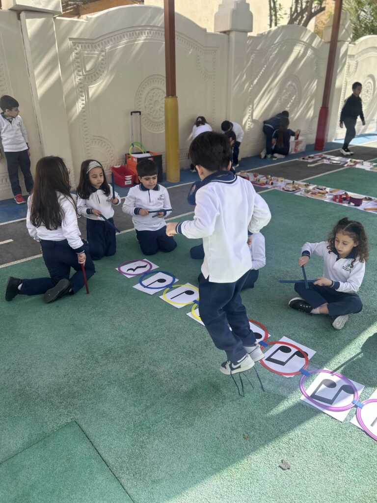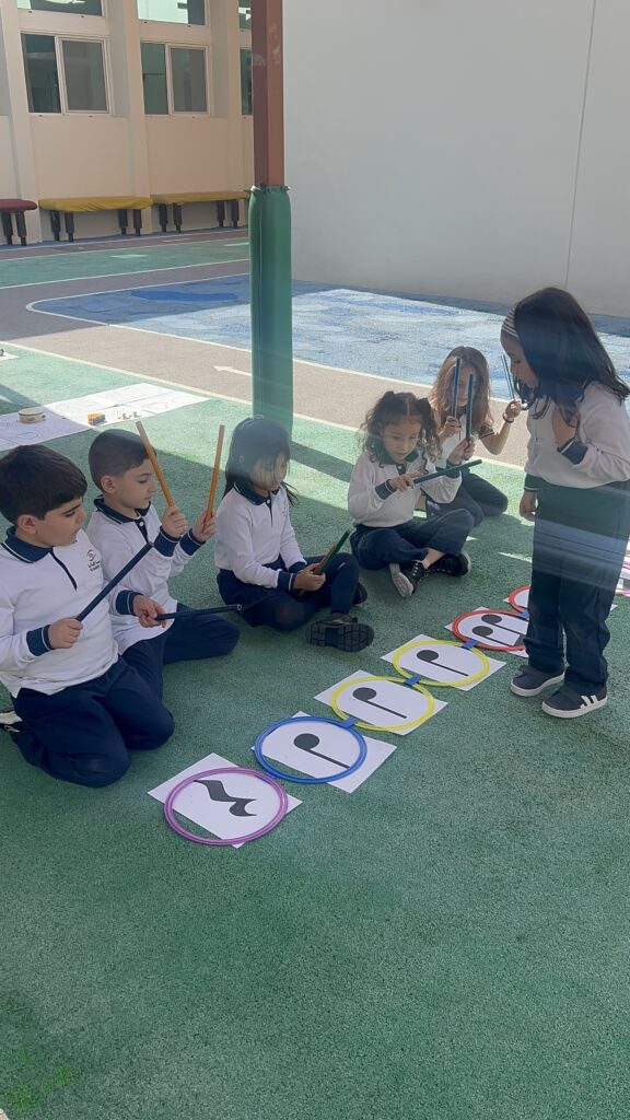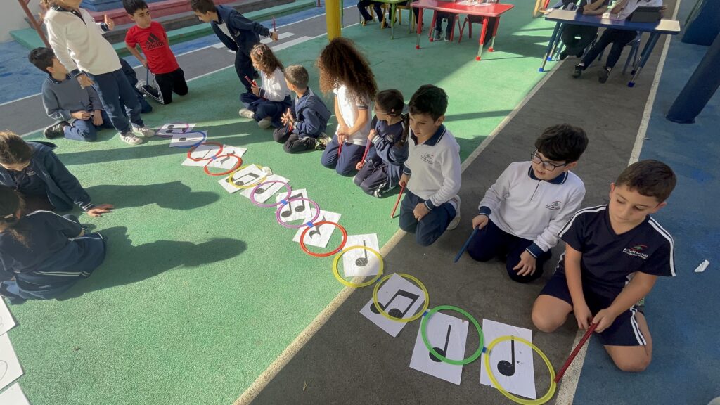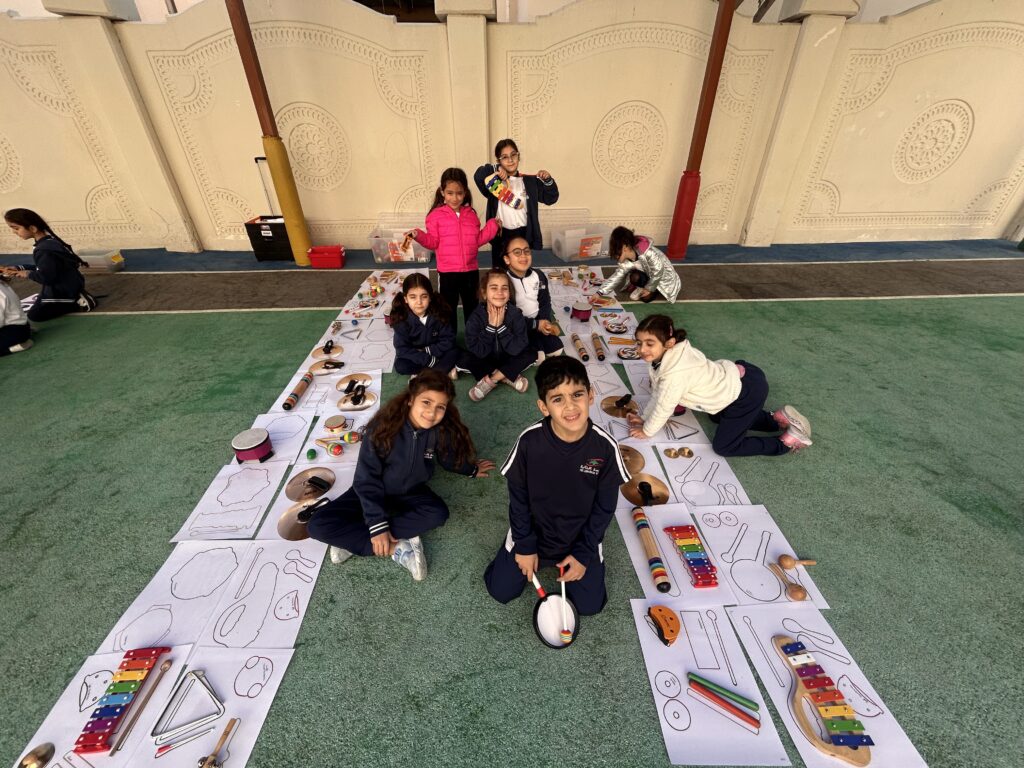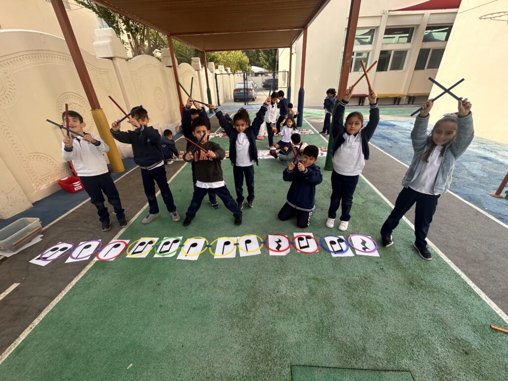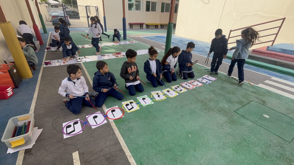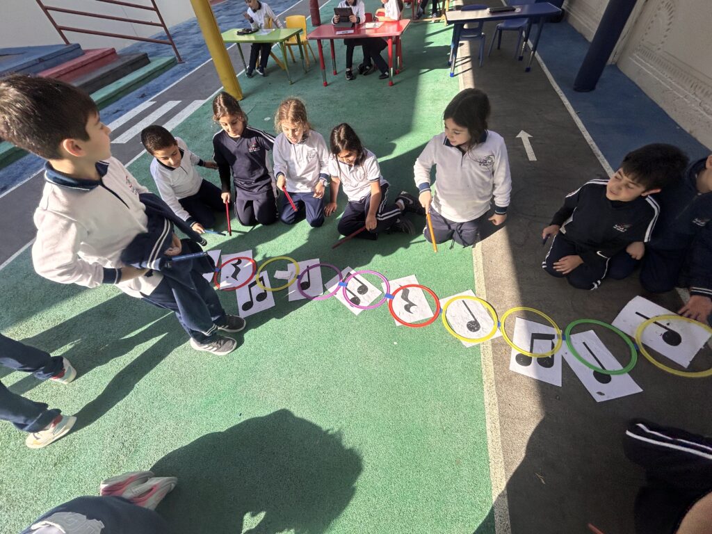 Grade 1 and 2 students took music beyond the classroom as they explored creative outdoor stations, building essential skills through playful musical challenges and teamwork.